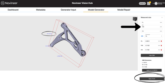 - Use NoviVision Hub to generate a model, scale it, repair it, and download/export results