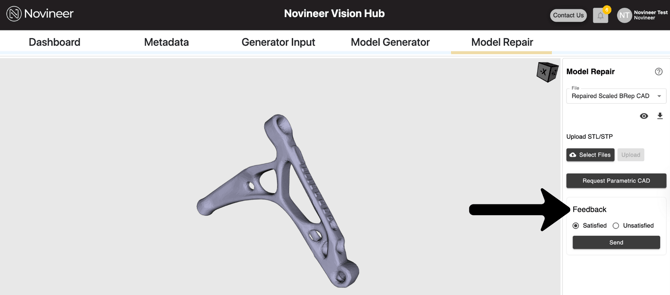 Feedback: The Model Repair page includes a simple feedback control to share your experience with the generated models. Select Satisfied or Unsatisfied, then click Send